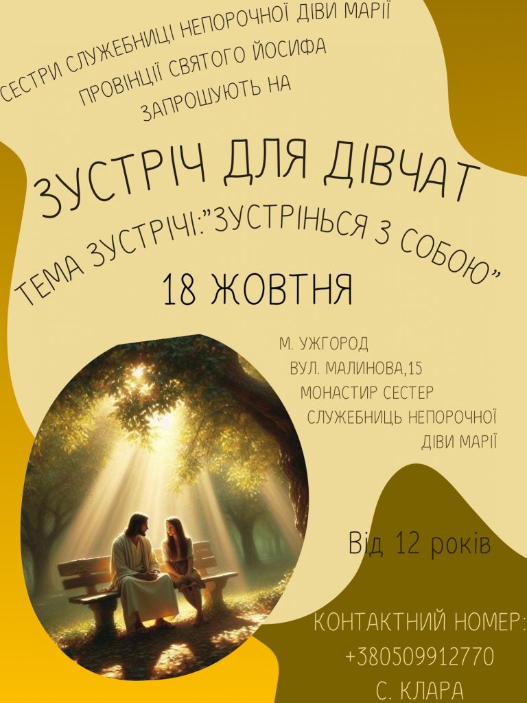Привіт, привіт, дорогі дівчата! Слава Ісусу Христу! Отож, так як ми і обіцяли, чекаємо всіх бажаючих на зустріч для дівчат. Є така думка, що якщо дівчата ідуть на зустріч для дівчат, яку організовують монахині, значить вони точно будуть іти в…